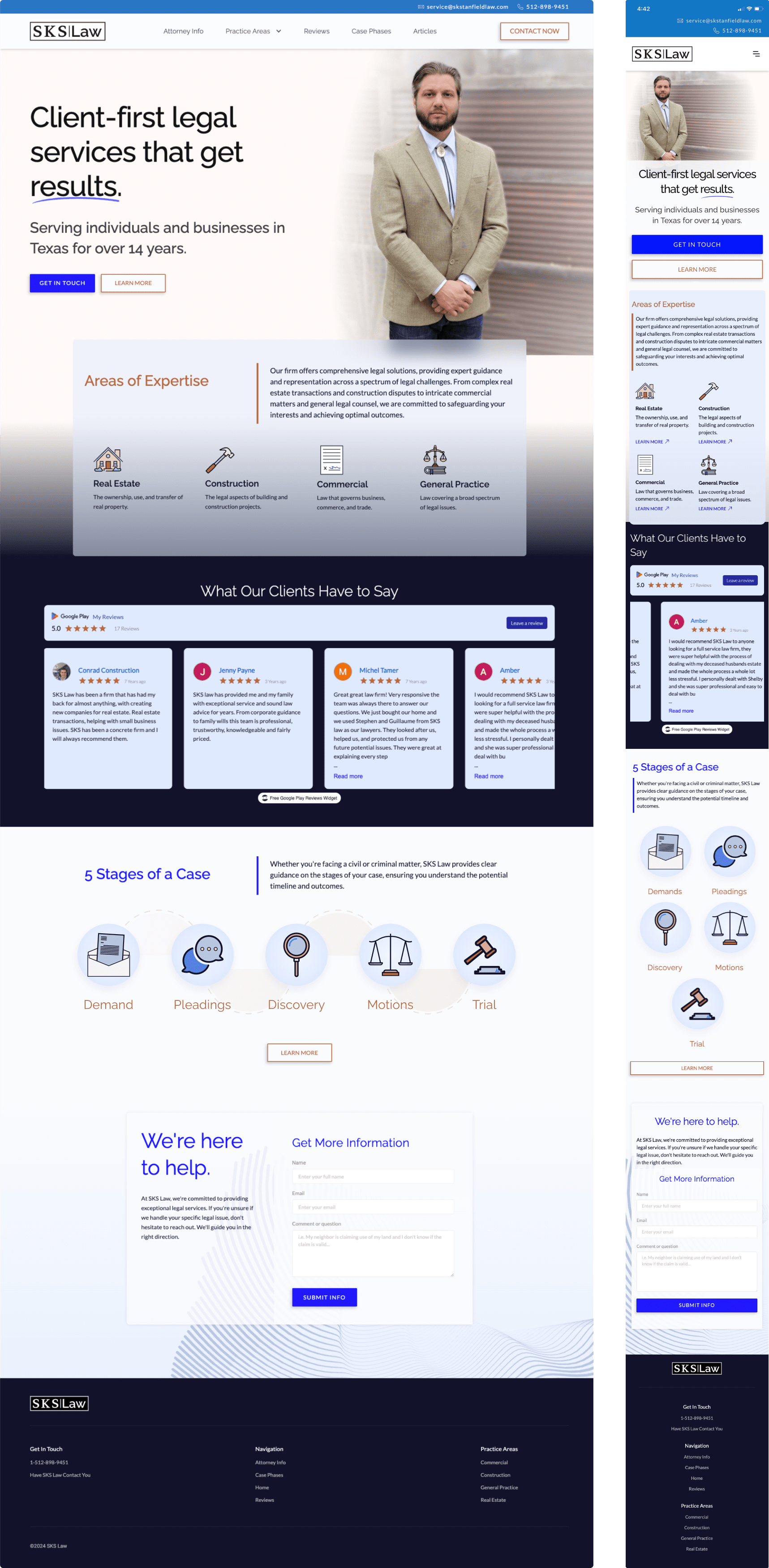 A new law firm needs more than a logo; it needs an identity that builds trust and stands out in a crowded market. SKS Law, a start-up firm in Austin, had a vision for their practice, but needed a brand strategy and a digital presence to match. I took on the challenge of shaping their identity from the ground up, blending deep market research with a user-centered approach to create a brand that would resonate with their clients and drive growth.
